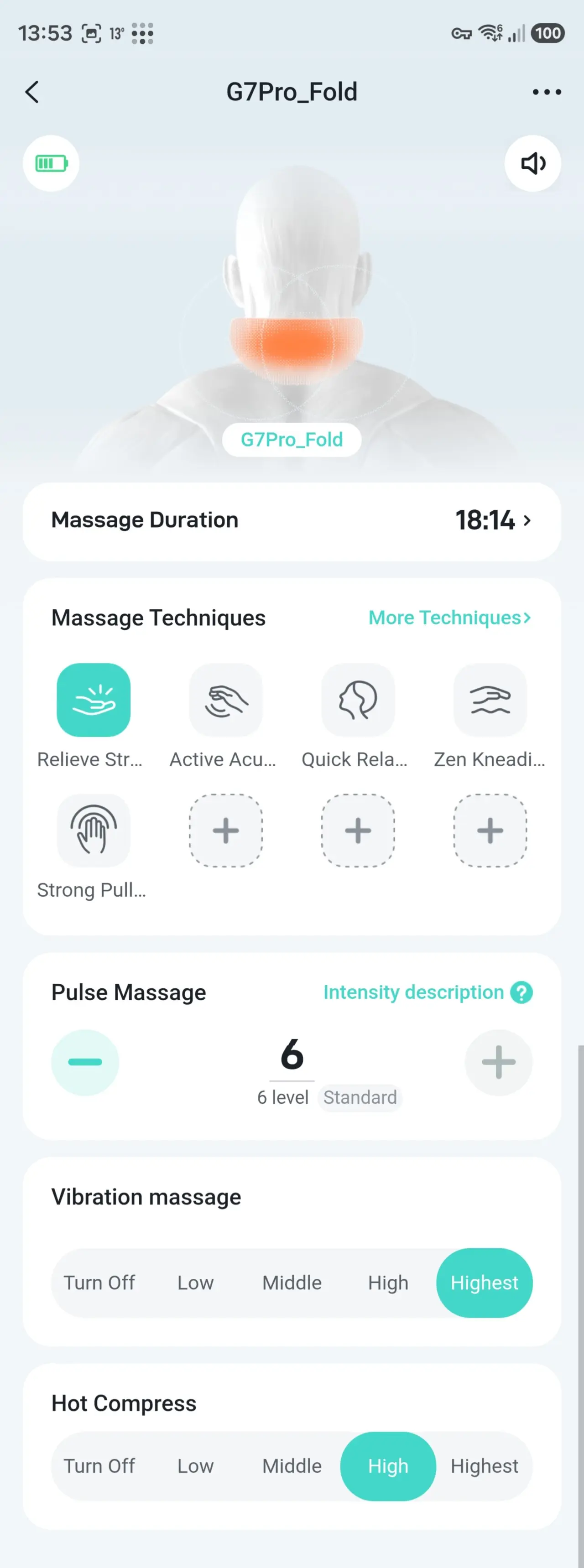 माझ्यासाठी मी हे शोधून काढले की मी ते सर्व मार्गाने चालू करू शकतो, आणि सायकल चालवण्यासाठी बरेच मोड आहेत, वरीलपैकी कोणतेही मोड जोडल्यास ते डिव्हाइसवर पाठवले जाते आणि व्हॉइस नोटिफिकेशनद्वारे “सानुकूलित मोड” म्हणून घोषित केले जाते. माझ्यासाठी बहुतेक … मानवी वाटणारा, “हार्ड प्रेस…” मोड होता जो माझ्या गळ्यात बोटांनी दाबल्यासारखा वाटत होता.