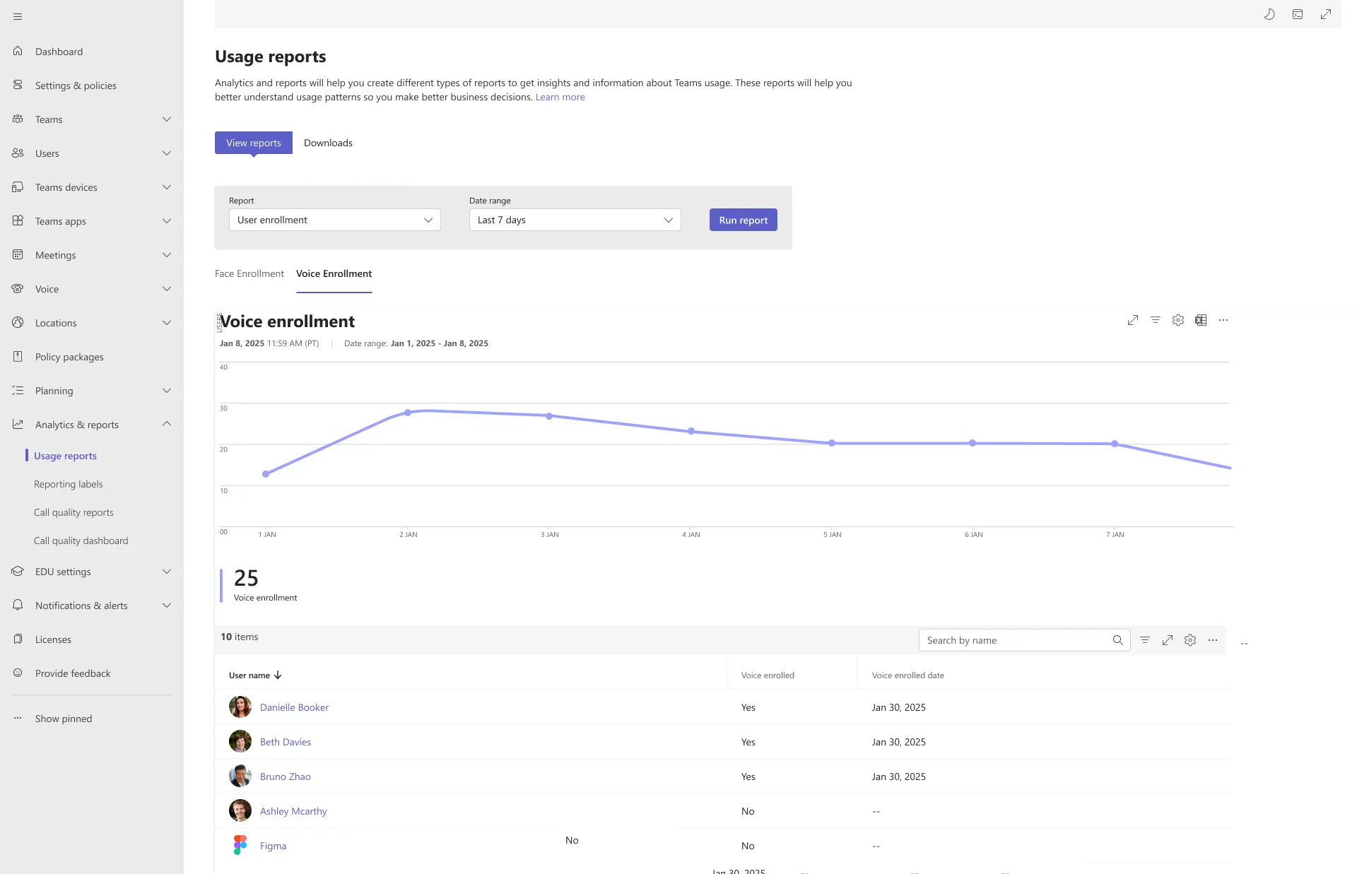 आवाज आणि चेहरा नोंदणीसाठी मायक्रोसॉफ्ट टीम डॅशबोर्ड