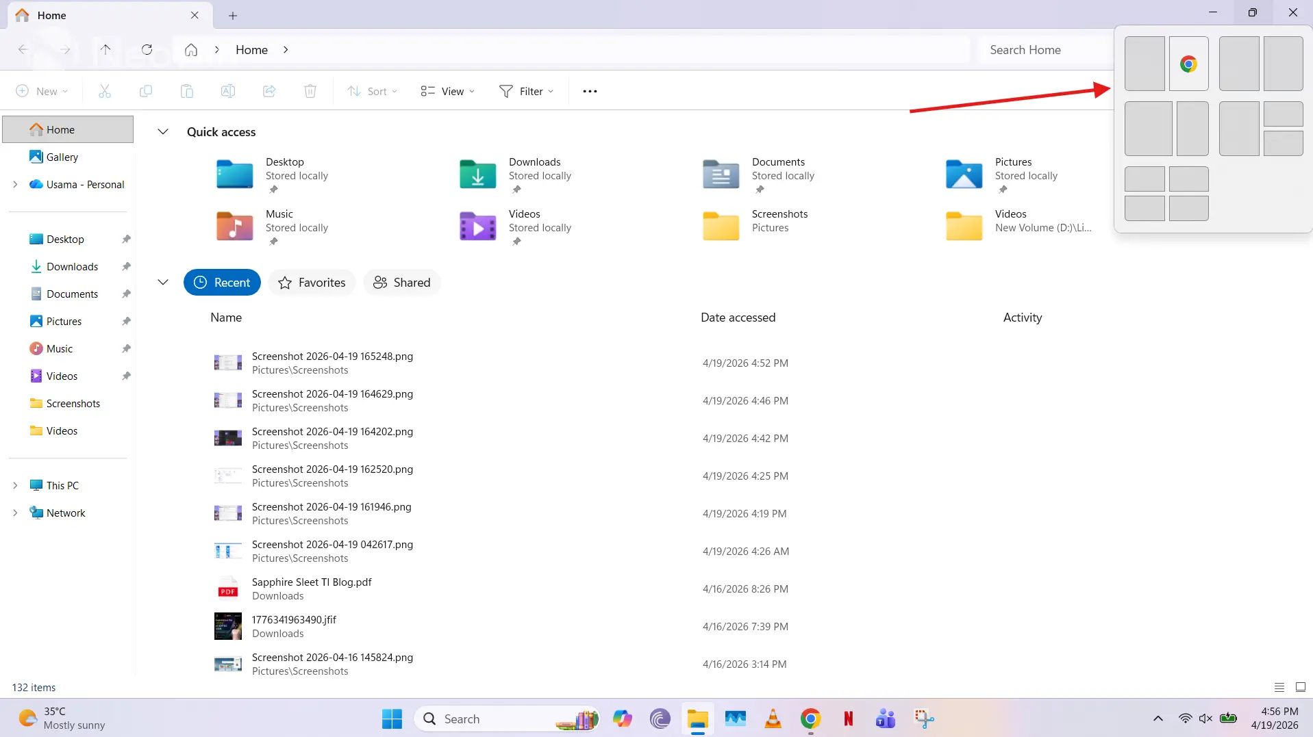 मला अजूनही वाटते की स्नॅप लेआउट हे Windows 11 च्या सर्वोत्कृष्ट वैशिष्ट्यांपैकी एक आहे, विशेषत: ते किती अंतर्ज्ञानी आहे आणि ते आपल्या उत्पादनक्षमतेसाठी काय चमत्कार करू शकते याचा विचार करता. मी 2021 मध्ये याबद्दल लिहिले होतेपरंतु थोडक्यात, जर तुम्ही कमाल करा बटणावर फिरवत असाल तर ते तुम्हाला पूर्वनिर्धारित क्षेत्रांपैकी एक विंडो द्रुतपणे “स्नॅप” करण्यास अनुमती देते. वरील स्क्रीनशॉट पहा.