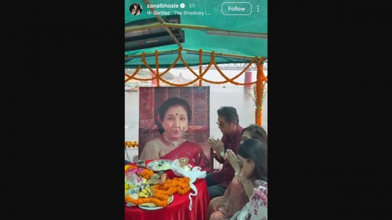 दिवंगत दिग्गज पार्श्वगायिका आशा भोसले यांचे कुटुंबीय सोमवारी पवित्र शहरात वाराणसी येथे जमले आणि त्यांच्या अस्थीचे गंगा नदीत विसर्जन केले. या प्रसिद्ध गायकाचे वयाच्या ९२ व्या वर्षी मुंबईत निधन झाल्याच्या एका आठवड्यानंतर हा सोहळा पार पडला. झनई भोसले म्हणते की तिला गेल्या काही दिवसांत तिची दिवंगत आजी आशा भोसले यांची ‘मजबूत उपस्थिती’ जाणवली.