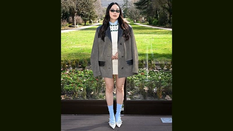 तिने पॅरिसमध्ये शार्प टेलरिंगचा प्रयोग केला, ग्रे चेकर ॲक्ने स्टुडिओ सूटमध्ये डीप-व्ही ब्लेझर आणि बरगंडी टाचांसह स्टेप आउट केले, एक परिष्कृत परंतु आधुनिक क्षण जो तिची विकसित फॅशन ओळख अधोरेखित करतो.