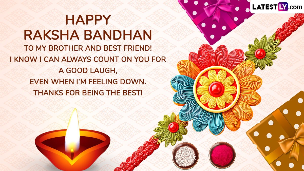 व्हाट्सएप संदेश वाचतो: माझा भाऊ आणि जिवलग मित्राला रक्ष बांहन शुभेच्छा! मला माहित आहे की मी निराश झालो तरीही मी नेहमीच तुमच्यावर हसण्यासाठी तुमच्यावर अवलंबून राहू शकतो. सर्वोत्कृष्ट असल्याबद्दल धन्यवाद!