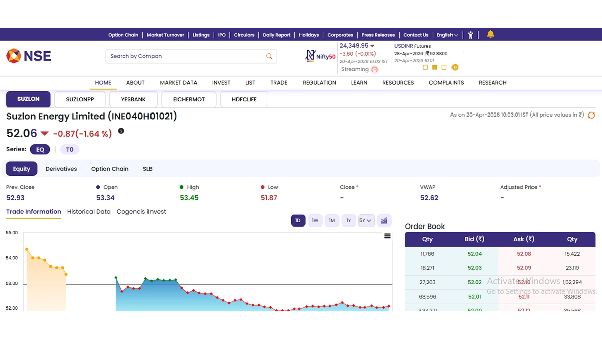 सुझलॉनचे शेअर्स आज लाल रंगात उघडले (फोटो क्रेडिट्स: NSE)